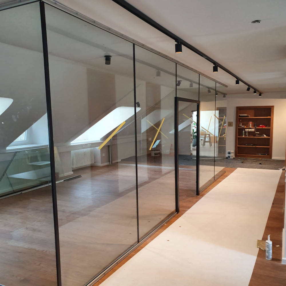 Im Bürobereich schaffen sie klare Arbeitszonen, ohne den Raum zu beengen. In Wohnräumen eignen sie sich hervorragend, um Ess- und Wohnbereiche zu trennen oder Nischen zu schaffen, ohne auf Licht und Offenheit zu verzichten. Feste Trennwände ohne Tür bieten zudem den Vorteil geringer Wartung und hoher Langlebigkeit, da keine beweglichen Elemente wie Türen oder Scharniere berücksichtigt werden müssen.