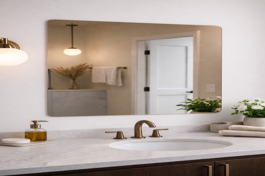 Getönte Spiegel Bronze nach maß – in den edlen Farbe Bronze. Maßgefertigt, langlebig und pflegeleicht, ideal für moderne Innenräume und dekorative Akzente.