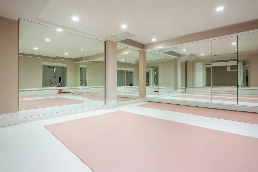 VSG Spiegel (Sicherheitsspiegel) – klare Spiegelung, maximale Sicherheit, maßgefertigt nach Ihren Wünschen. Ideal für Bad, Fitnessbereich oder öffentliche Räume.