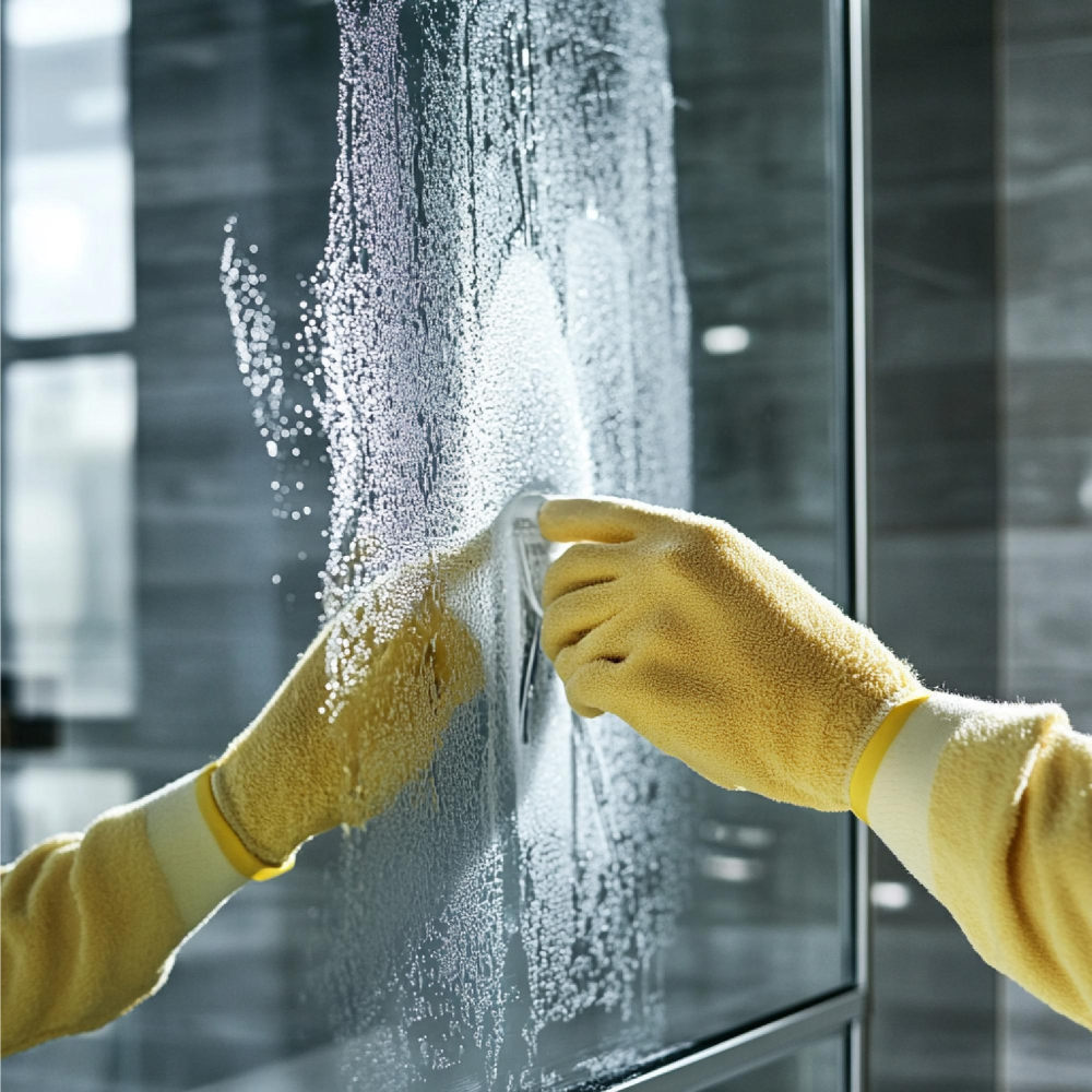 Anschließend wird die Glasfläche mit einem sauberen Mikrofasertuch gleichmäßig gereinigt. Wichtig ist eine ruhige, gleichmäßige Bewegung – idealerweise von oben nach unten oder in leicht geschwungenen Bahnen. So wird verhindert, dass Reinigungsmittel ungleichmäßig verteilt wird.